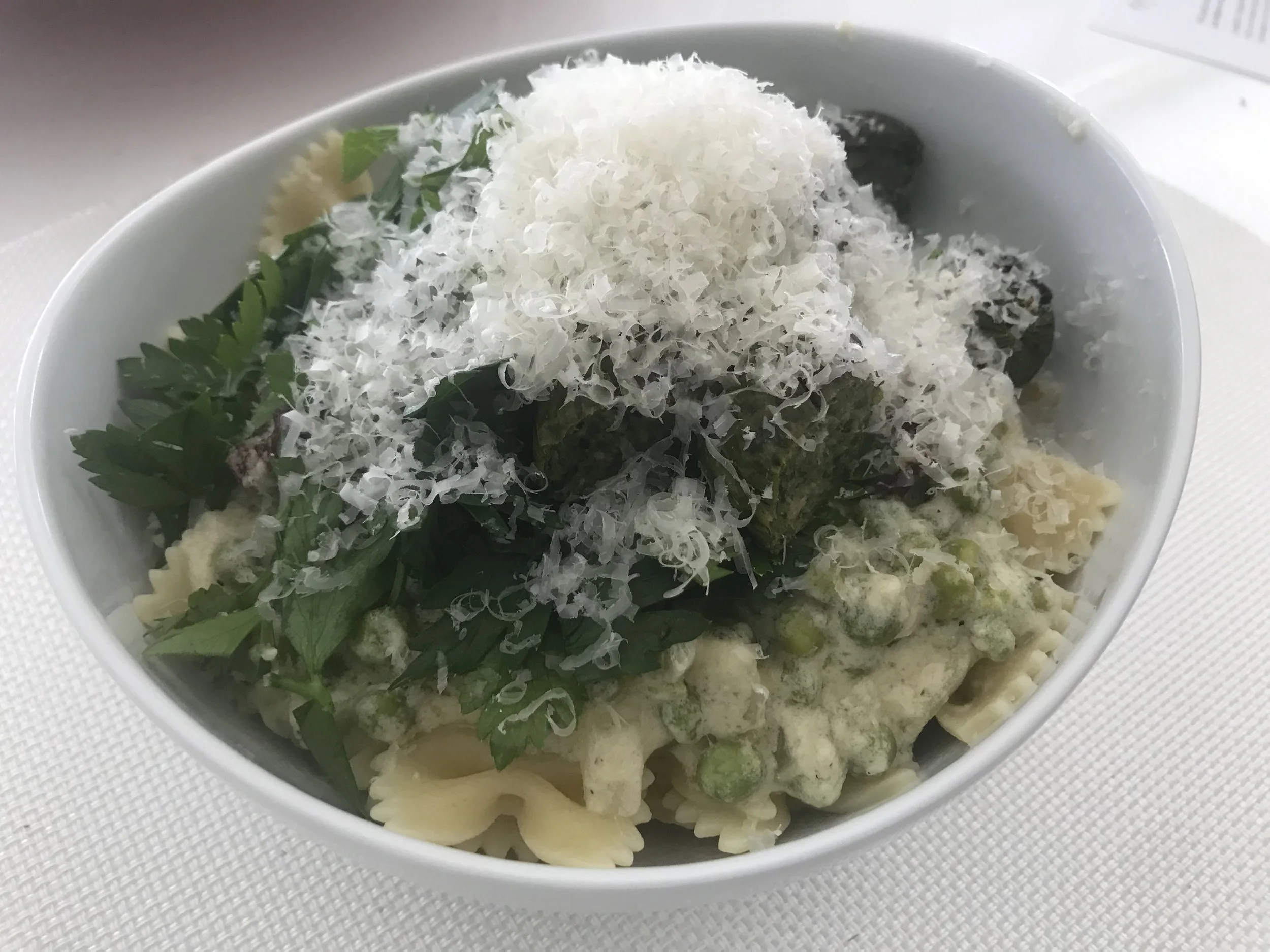 BOW TIE PASTA W/ VODKA CREAM SAUCE, PEAS, AND SUN DRIED TOMATOES